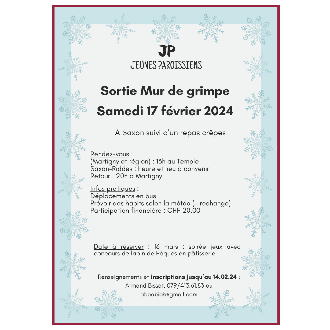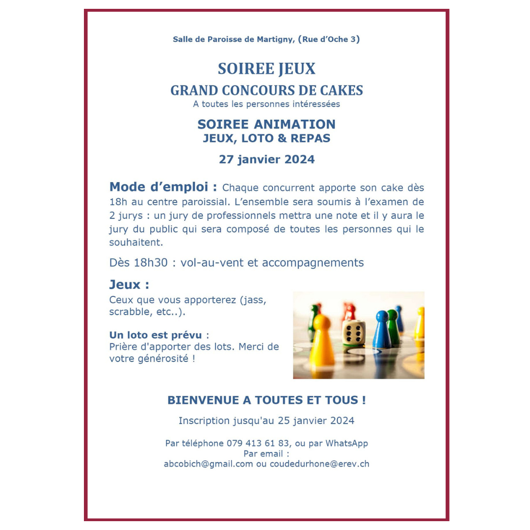 Ministre : Armand Bissat Concours de biscuits. Merci à ceux qui le souhaitent d'apporter des biscuits. Menu du repas : chasse
